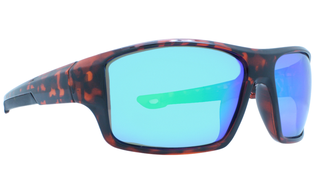 HOUSTON- BLACK, TORTOISE TR90 FRAMES WITH POLARIZED FIRE, GREEN, BLUE TRV MIRRORED LENSES